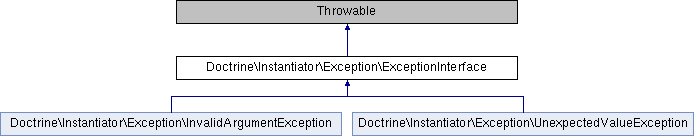 Inheritance diagram for Doctrine\Instantiator\Exception\ExceptionInterface: